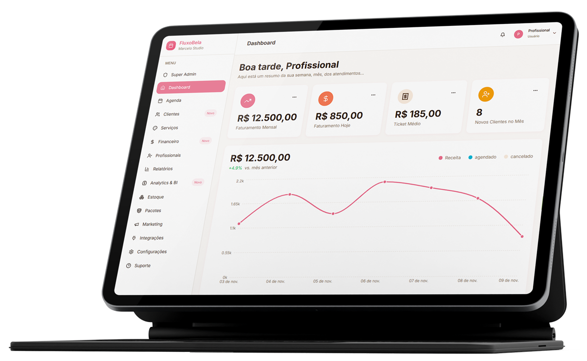 Sistema completo que vai do agendamento ao financeiro, tudo em um só lugar para você focar no que realmente importa: seus cliente